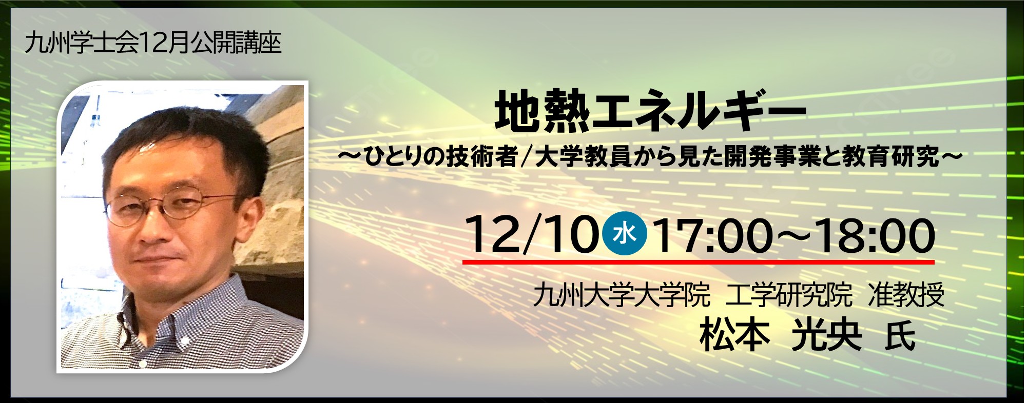 【12月公開講座】地熱エネルギー~ひとりの技術者/大学教員から見た開発事業と教育研究